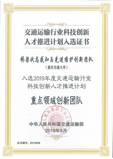 近日,交通运输部传来喜讯,由我校土木工程学院周建庭教授领衔的“桥梁状态感知与先进维护创新团队”成功入选2019年度交通运输行业科技创新人才计划—重点领域创新团队。据悉,本次创新团队首次在全国大交通行业放开申报,包括同济大学、交通运输部公路科学研究院、东南大学、南京水利科学研究院、哈尔滨工业大学、北京交通大学、大连海事大学、长安大学、苏交科等交通科研院所和企业的近30支团队参与角逐,最后仅有8支团队入选,竞争异常激烈。我校“桥梁状态感知与先进维护创新团队”经过网评和现场专家答辩环节,成功入选。这也是我校首次入选交通运输行业重点领域创新团队。