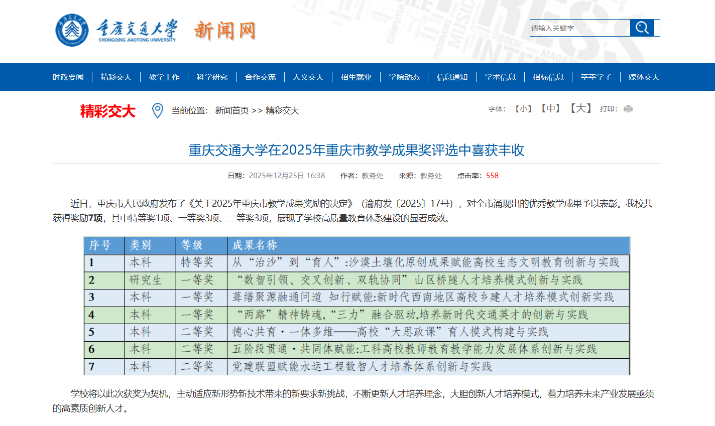 NO.7 新的荣光 重庆交通大学教学团队各项成果再获佳绩